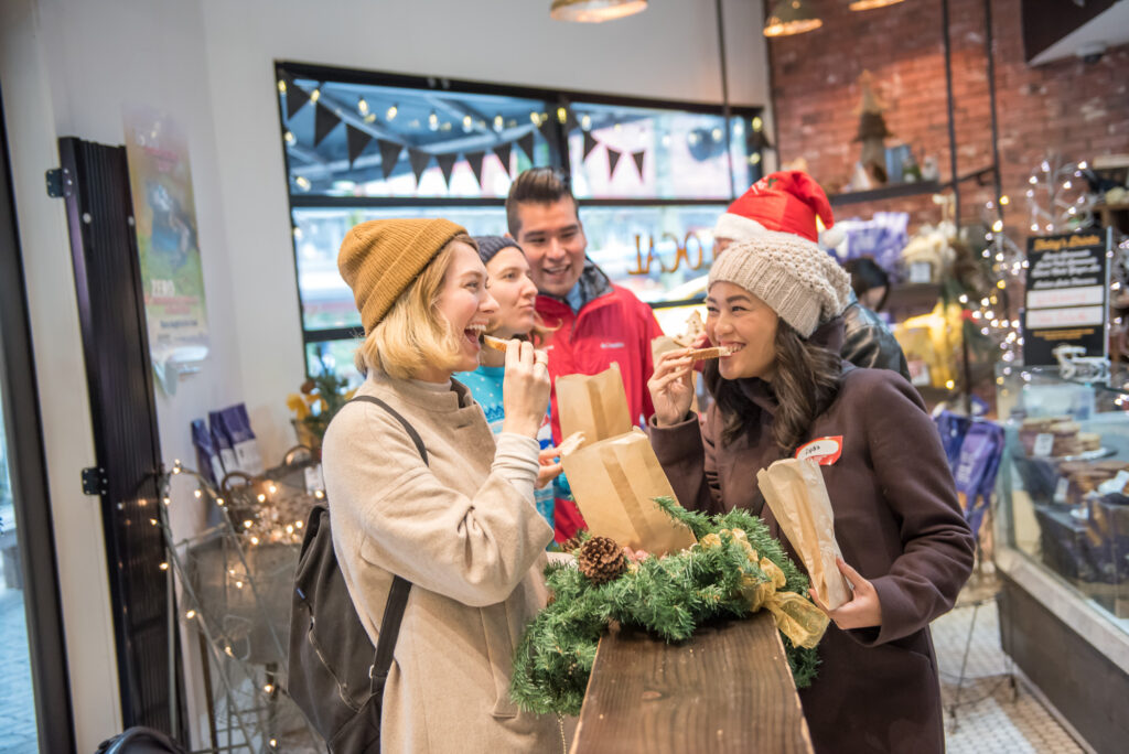 Celebrate the holidays on Granville Island. Enjoy seasonal tastings among artisan stalls, cozy treats, and Christmas charm.